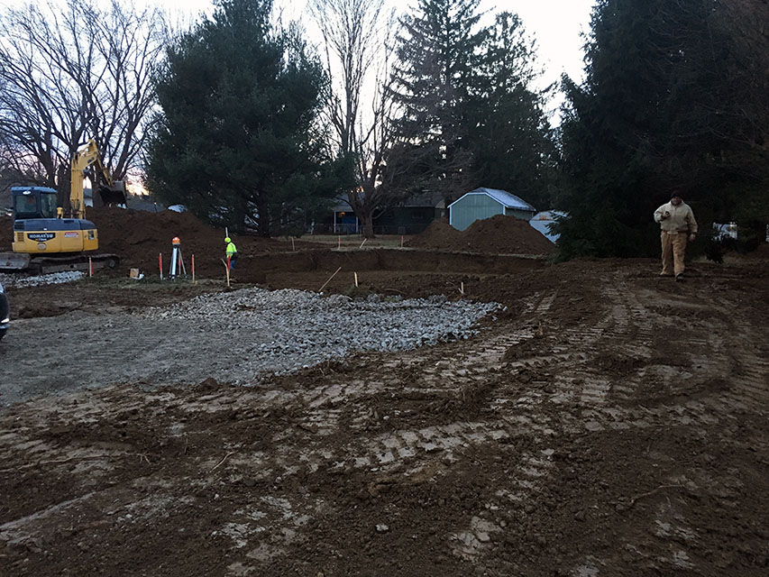 The Beeson luxury town homes are underway! Today we broke ground on our newest project. The trees have been cleared from the lot, the foundation has been dug, and the driveways have been installed. Our next steps will be to pour the foundation and fill it with gravel.