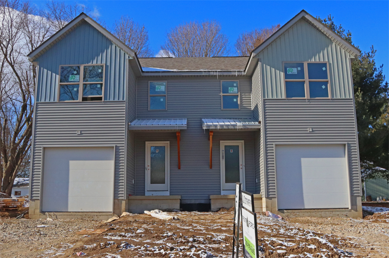 The siding has been installed on the townhomes, the doors and trim are going up, and the interior is being…